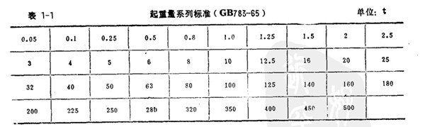 (起重量的國家標準(GB783—65)圖表)