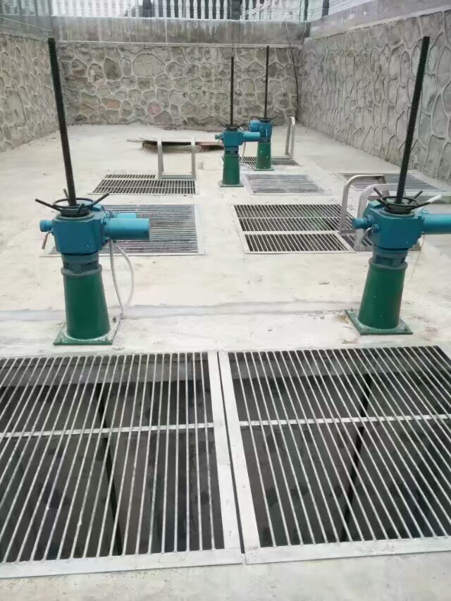 2、將手動螺桿啟閉機置于安裝位置。把一個限位盤套在螺桿上,將螺桿從橫梁的下部旋入機器中,當螺桿從機器的上方露出后,再套上限位盤。螺桿的下方與閘門連接。